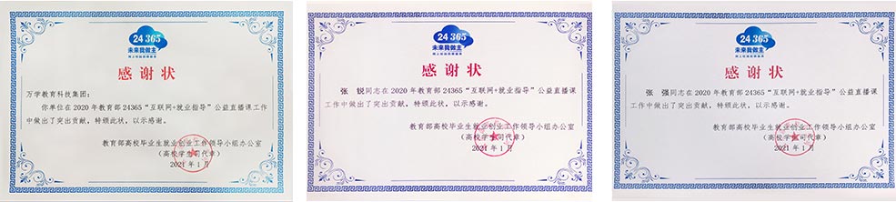 喜讯 | 教育部高校学生司给看球直播集团和万学高管颁发了重磅感谢状